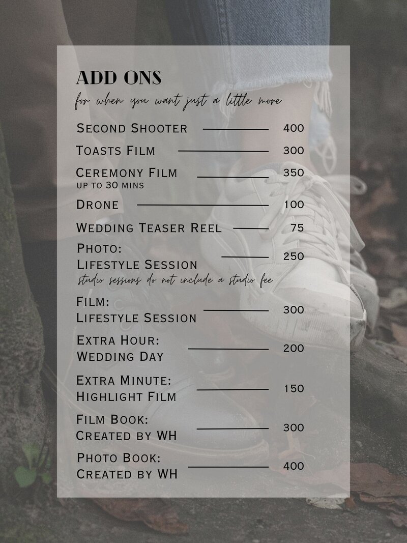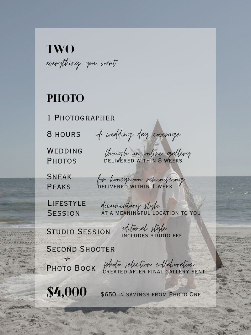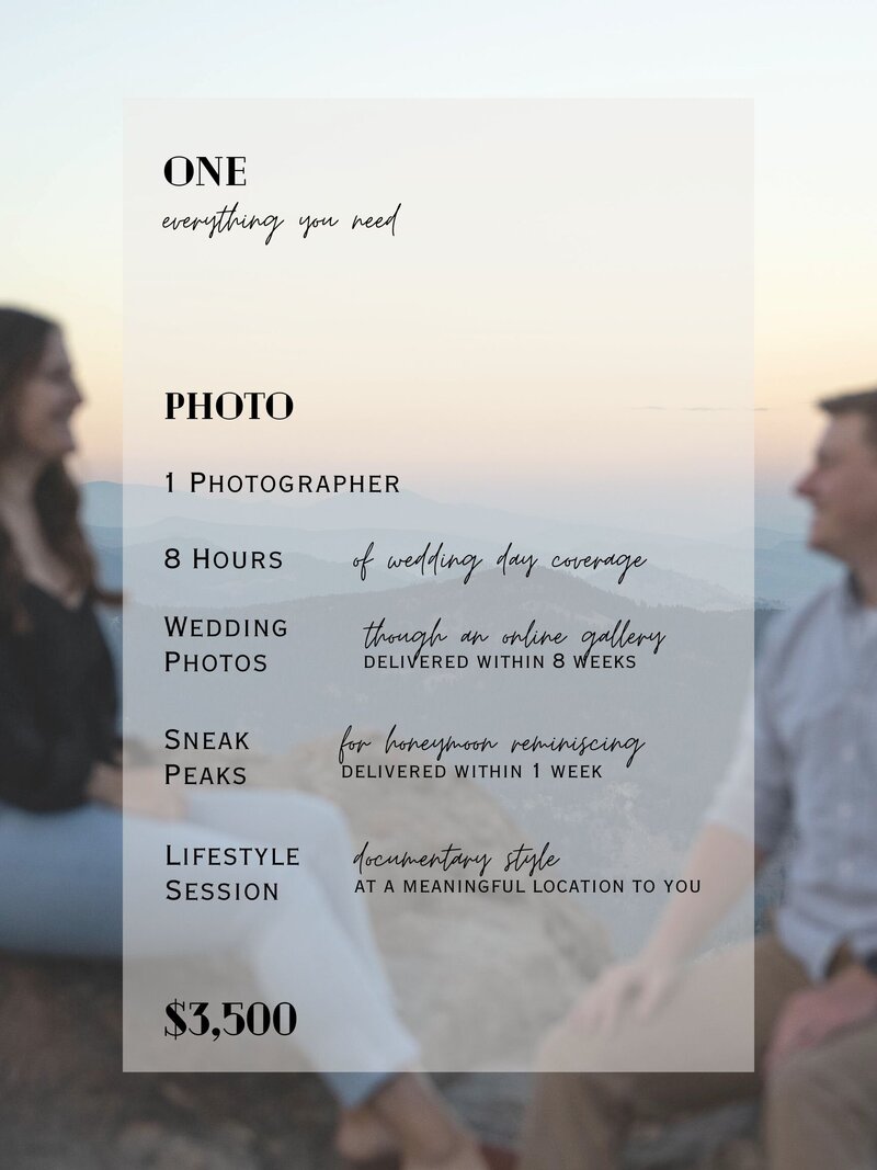 Collection One includes an Engagement Session which you don't need, so you can either do another one (always fun to have more photos) or I can swap that out for a second shooter (Bryan). If you choose Collection One, I will add a Complimentary Custom Photo Album!
